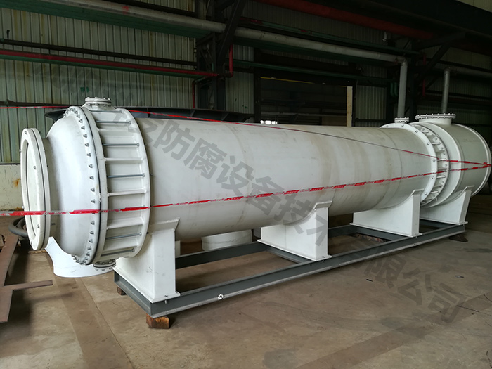 多級折流冷凝器換熱面積120㎡,殼程:FRPP,管程:改性高純石墨。